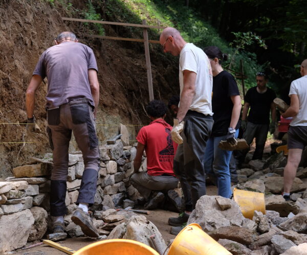 - Tipologia di lavoroRipristino di tre ampi tratti di muro di contenimento delle dimensioni complessive di 35 m x 1,1 m. Sono state utilizzate pietre locali di origine calcarea. Il lavoro è stato eseguito da 4 giovani partecipanti guidati da un artigiano professionista. Oltre all’esperienza lavorativa il team ha condiviso gli spazi abitativi in tende da campo e una cucina all’aperto per due intere settimane.
